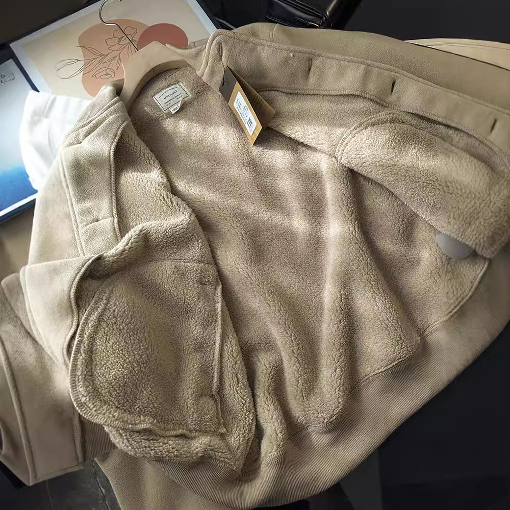 Casual Velvet Thickened Baseball Uniform Stand Collar Jacket