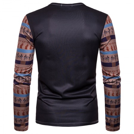 Men's Cartoon Character Avatar Printing Round Neck Long-Sleeved T-Shirt