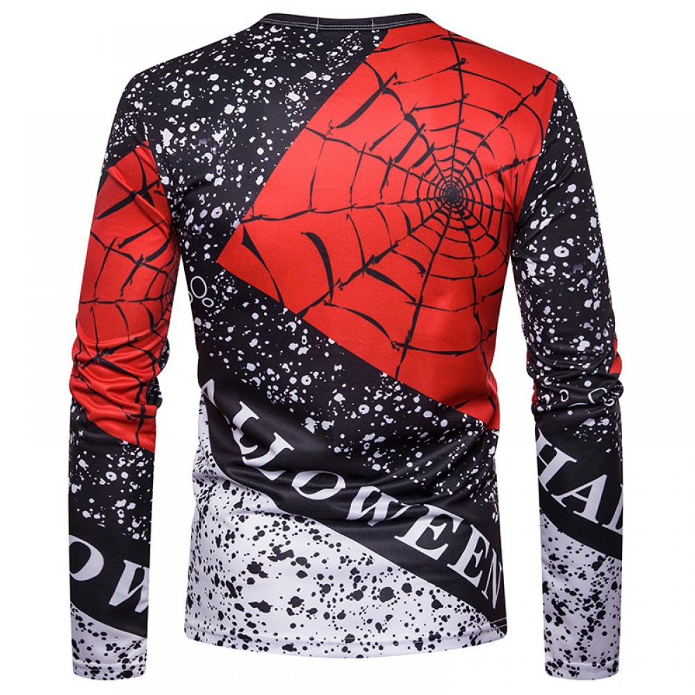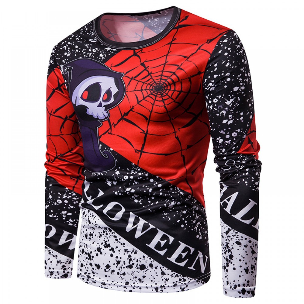 New Men's Personality Halloween Skull Print Round Neck 3D Long Sleeve T-Shirt